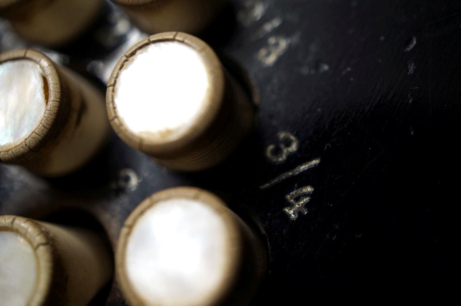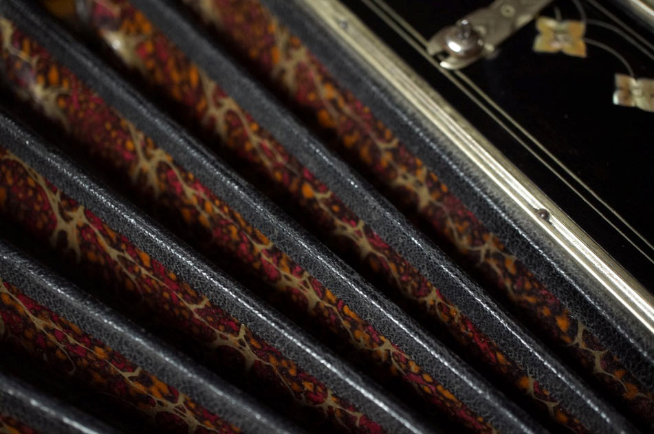The letter “M” carved into the two covers led to the assumption that this was a bandoneon made by the Mariani company in Buenos Aires. Mariani produced a small number of bandoneons in Buenos Aires, also with a stylized “M” carved into the covers. However, I consider this to be unlikely in this case. It is a typical ELA with all the details of the traditional brand. Since ELA also produced for Hohner and Hohner specially marked its (ELA) bandoneons, I suspect that the “M” stands for Matthias Hohner. We may never know for sure.