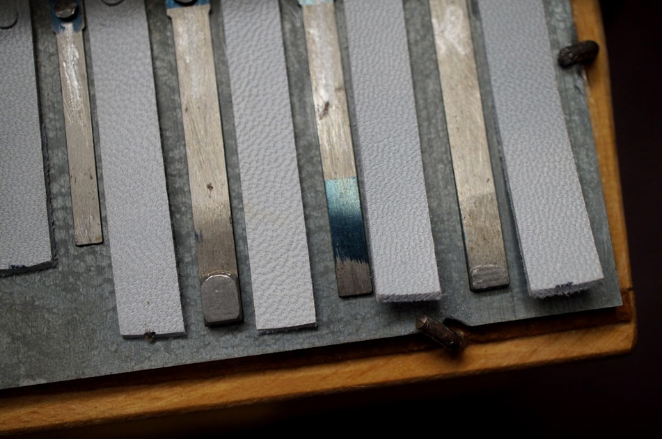 Einen besonderen Einfluß auf den Klang erkläre ich mir bei diesen größeren Platten auch durch das Mehr an Zink, welches hier als erhöhte Kontramasse der schwingenden Zunge entgegengesetzt wird. So erkläre ich mir auch den Grund, warum die Firma Ernst L. Arnold, die fast ausschließlich mit Aluminiumplatten gebaut hat, die breiteren Platten durchgehend behalten hat. |