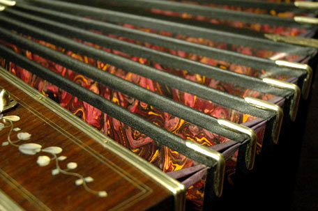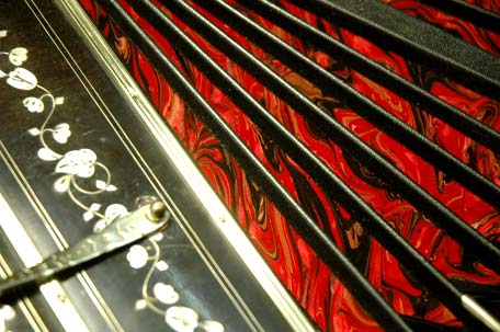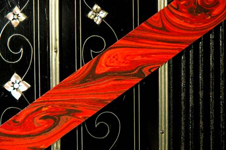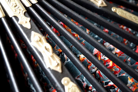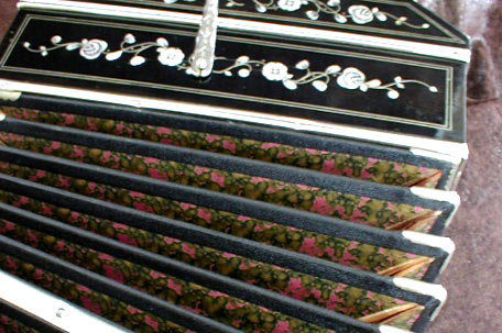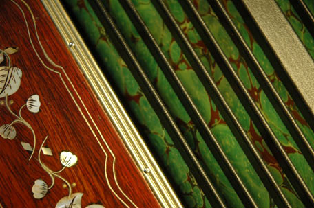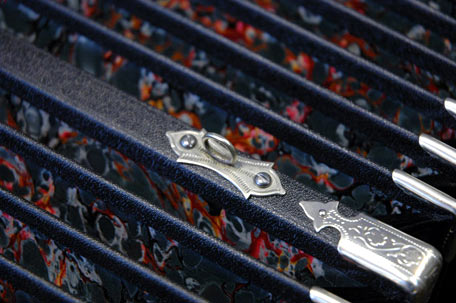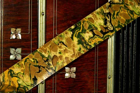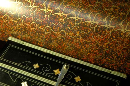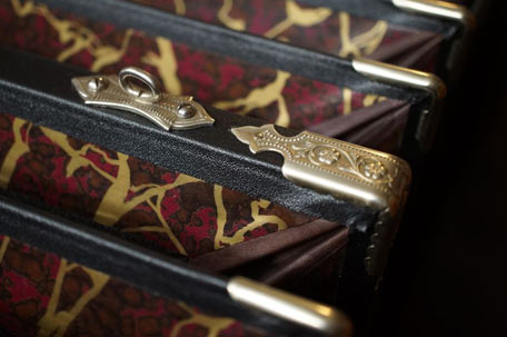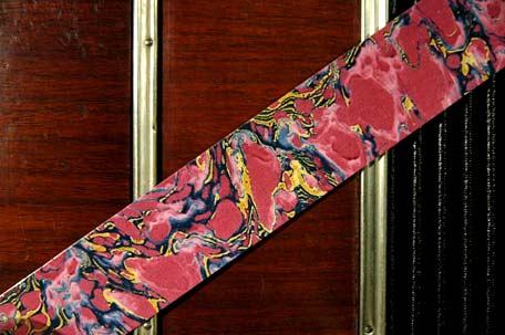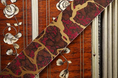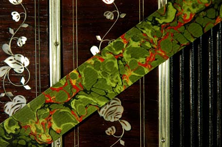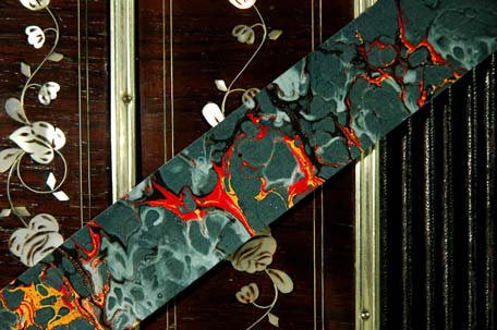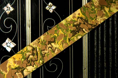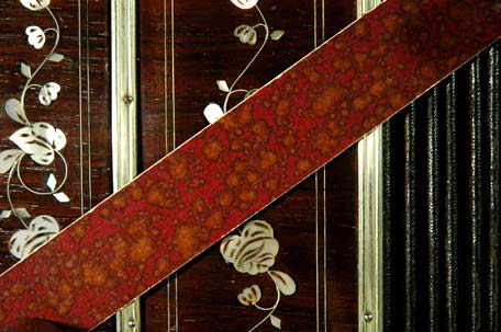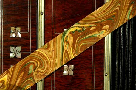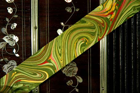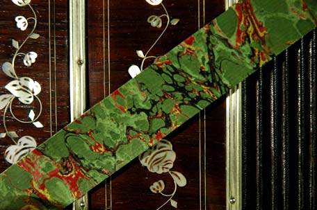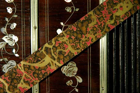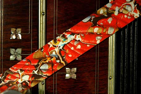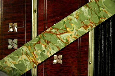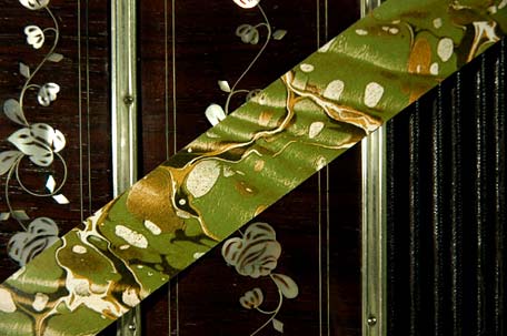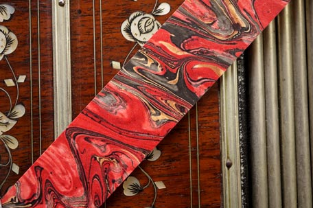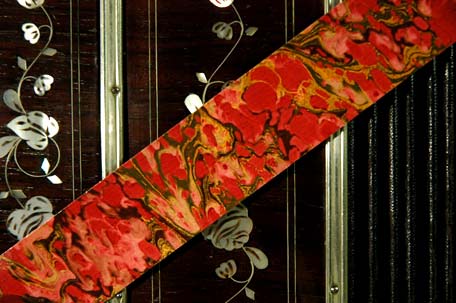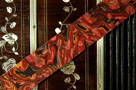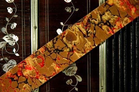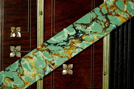 ist individueller Ausdruck eines jeden Instrumentes. Fast ausschließlich alle Papiere die ich verwende sind traditionell handkoloriert und beschichtet. In Farbe und Anmutung fallen diese Papiere jeweils leicht anders aus, was jeden Balg einzig macht.
