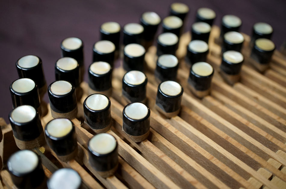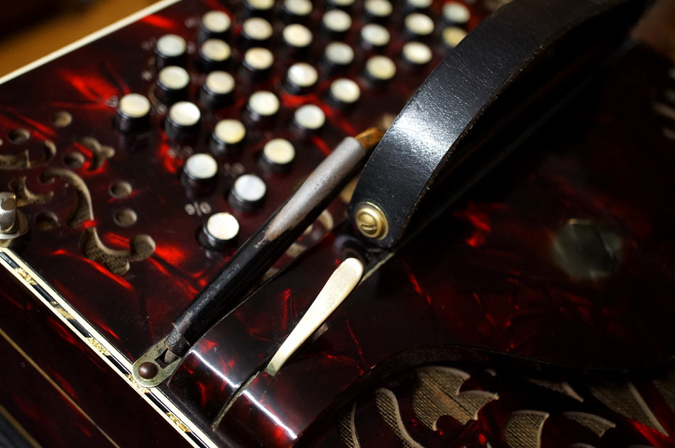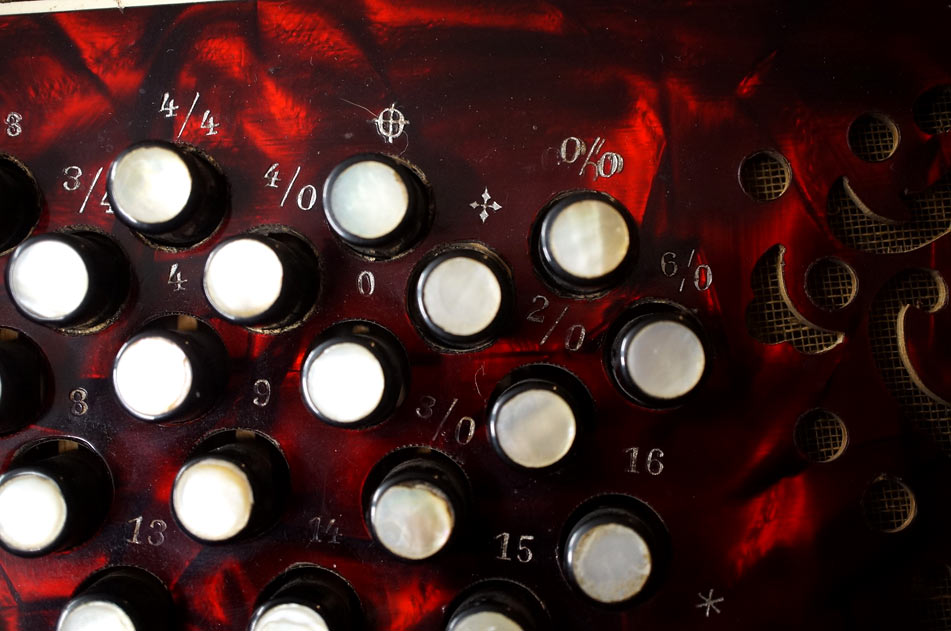 original 3-chörig / Schwebeton mit Daumenregister + tiefe Oktave |