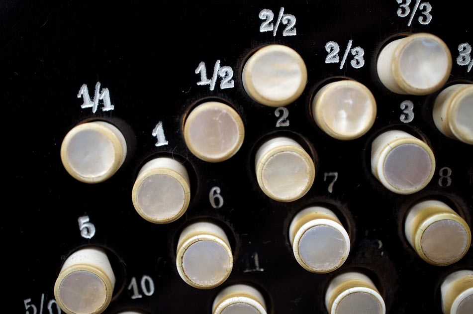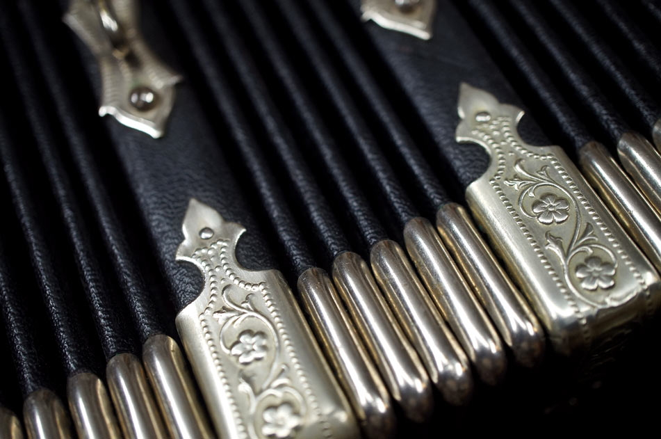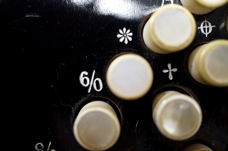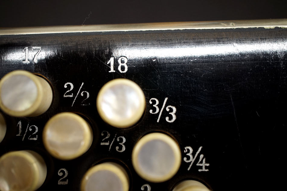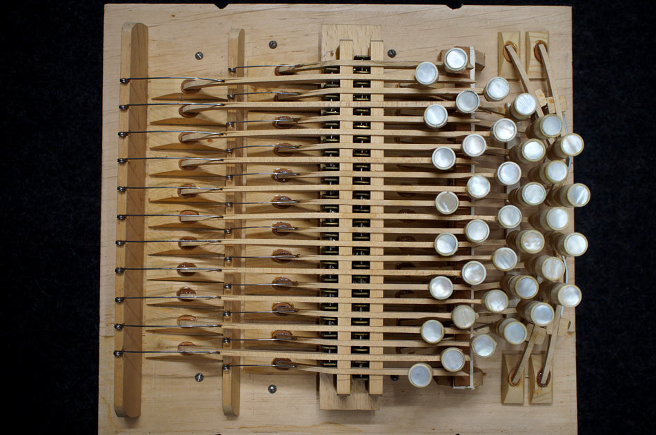 One advantage of the B system for the accordionist (and player of the counter-parallel system, as with this Bandoneon) is that you play the fast parts with the strong fingers 2 and 3. With the C system, on the other hand, you play the lower notes with the strong fingers and the virtuoso passages with the weaker fingers 3, 4 and 5.