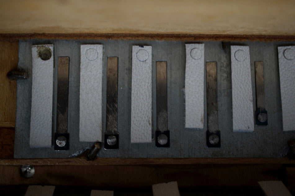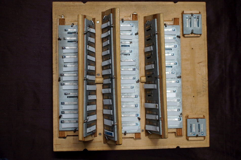 Einen besonderen Einfluß auf den Klang erkläre ich mir bei diesen größeren Platten auch durch das Mehr an Zink, welches hier als erhöhte Kontramasse der schwingenden Zunge entgegengesetzt wird. So erkläre ich mir auch den Grund, warum die Firma Ernst L. Arnold, die fast ausschließlich mit Aluminiumplatten gebaut hat, die breiteren Platten durchgehend behalten hat. |
