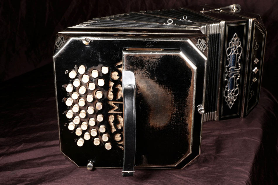 A classic bandoneon by Ernst L. Arnold Carlsfeld. It is a late model for ELA, probably from the first half of the 1930s. Unfortunately, it cannot be determined exactly. However, it is a typical model of this late era, when ELA returned to using zinc for the production of the reed plates.
