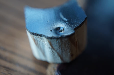 Be careful, steel wool is abrasive and will quickly take the glossy shellac layer off the veneer wood when it comes in contact with the wood parts. Especially on the quarter round edges of the lids, where the transition to the wood is so tight, working with steel wool is not without problems.