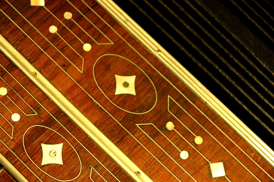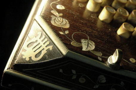 Die für ELA sonst typische Rose als Aussägearbeit zwischen Griff und Tastatur ist hier die Modellbezeichnung Cardenal.