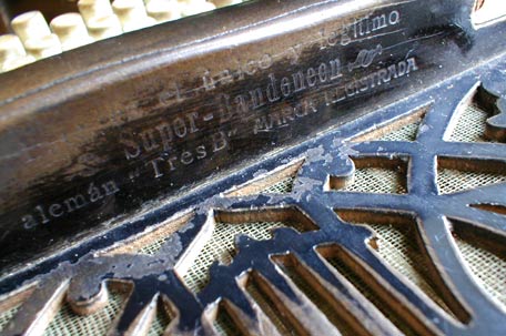 "Campo" Fabricado especialmente para Palacio de la Musica por Alfred Arnold-Carlsfeld ("Campo" fabricated specially for Palacio de la Musica by Alfred Arnold-Carlsfeld-Germany). |