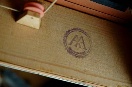 AA / Marca Registrada. Hier als Brandstempel an einem sog. Nachkriegsinstrument.