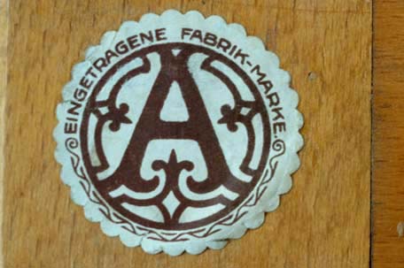 A / Eingetragene Fabrik-Marke (registered factory brand). Rare paper sticker (with thanks to Christoph Paas, Cologne). |