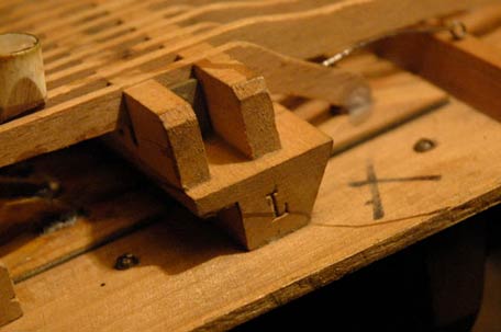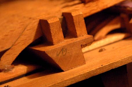 Ein geprägter Buchstabe in der Kopfseite der Gelenkstege findet sich oft. Das können verschiedene Buchstaben sein (hier ein L). Ich gehe davon aus, daß das Zeichen für die Produktion nützlich war, habe seinen exakten Sinn und Herkunft aber noch nicht herausbekommen.