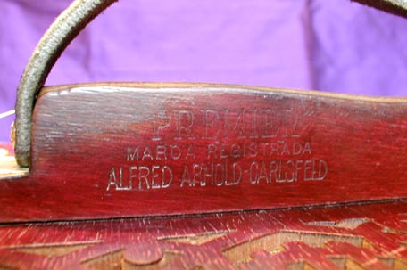 "PREMIER" Marca Registrada Alfred Arnold-Carlsfeld. Ein seltener Stempel neben der Luftklappenöffnung an einem AA / Premier.