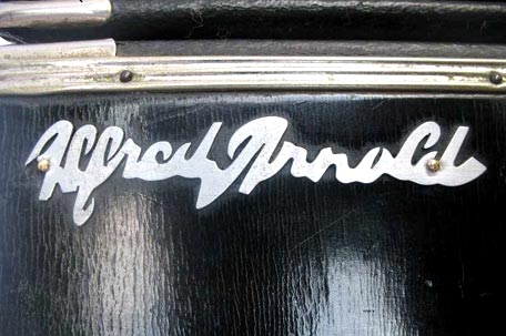ALFA, ist die Abkürzung für Alfred Arnold. Es war auch die Telegrammadresse des Betriebes in den 30er-Jahren. Ein seltener Brandstempel der sog. Nachkriegsinstrumente.