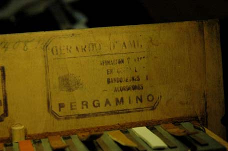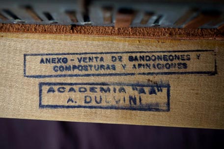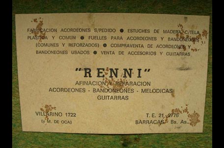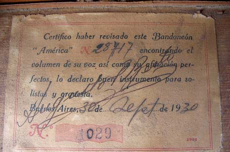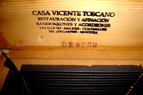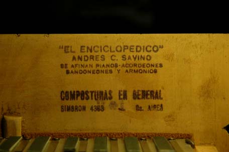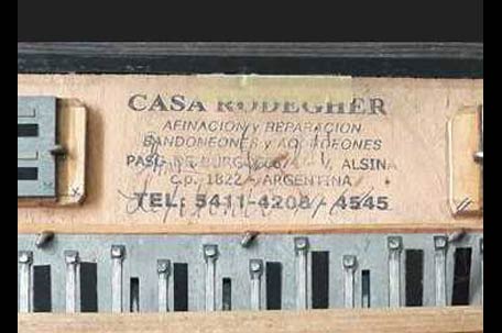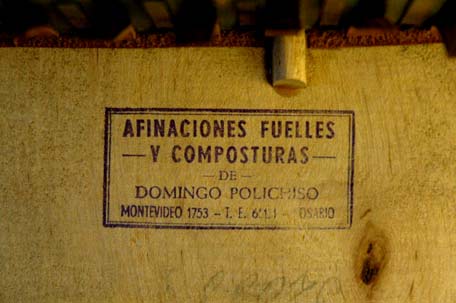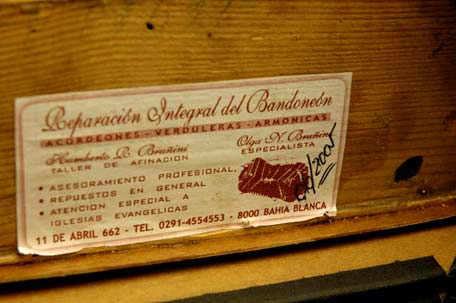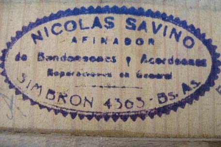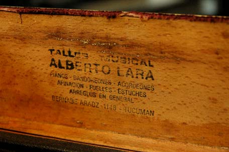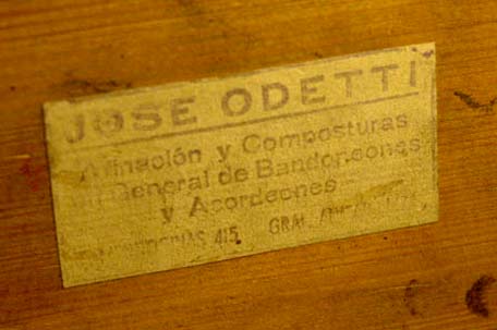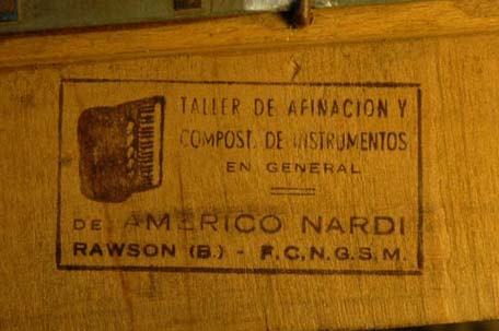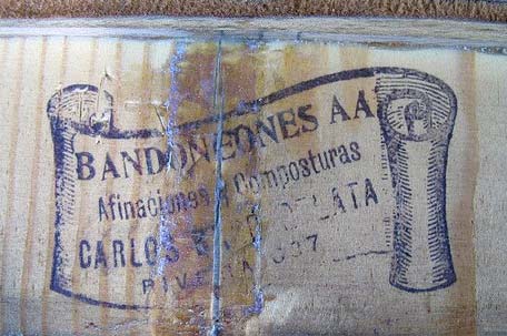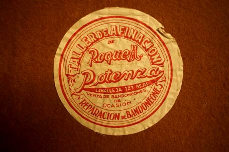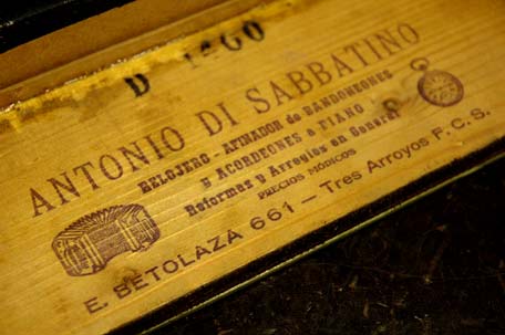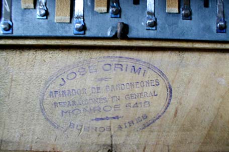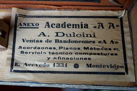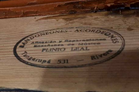 sellos y etiquetas en Bandoneones de comerciantes, afinadores y reparadores del pasado y del presente