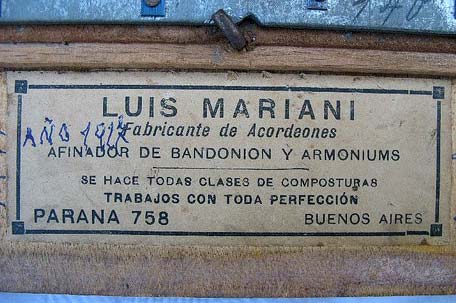 Luis Mariani, Fabricante de Acordeones, Buenos Aires / Argentina |