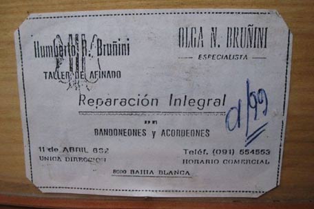 labels, stamps & marks in Bandoneons from dealers, tuners and repairers from past and present
